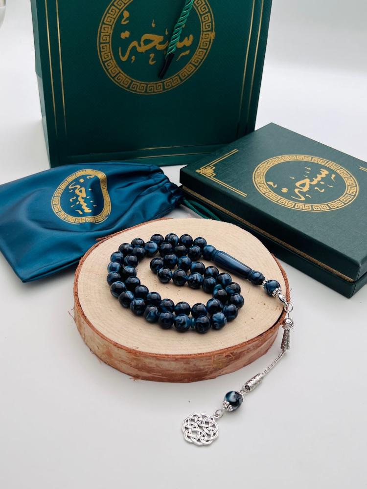 مسباح البكلايت خفيفة الوزن مصممة للاستخدام اليومي، تتميز بتصميم مريح وأنيق، عليها طربزونة تركية من الفضة مما يعطي السبحة جمال وفخامة.